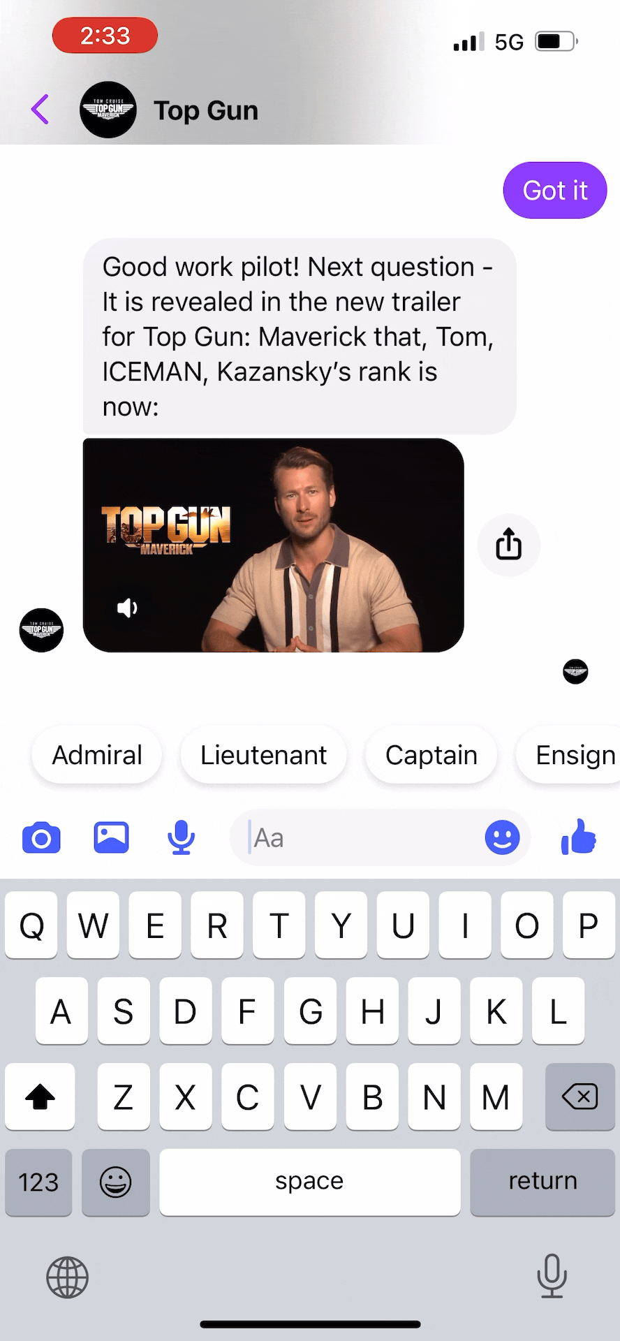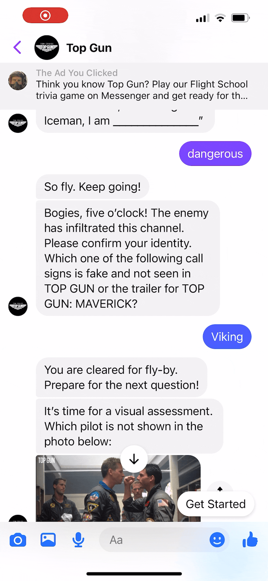 Opportunity: There are still extremely active Facebook groups dedicated to the original Top Gun movie. The conversation in these groups revolves around members quizzing each other on the source material: knowledge is the currency of this fan community - a platform insight we used to build our idea.